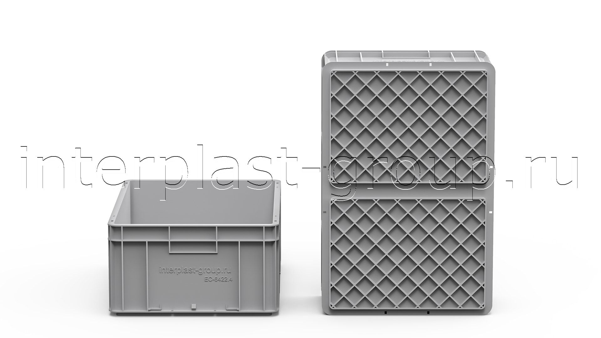Евроконтейнер закрытые ручки/усиленное дно (серый), 600x400x220 мм