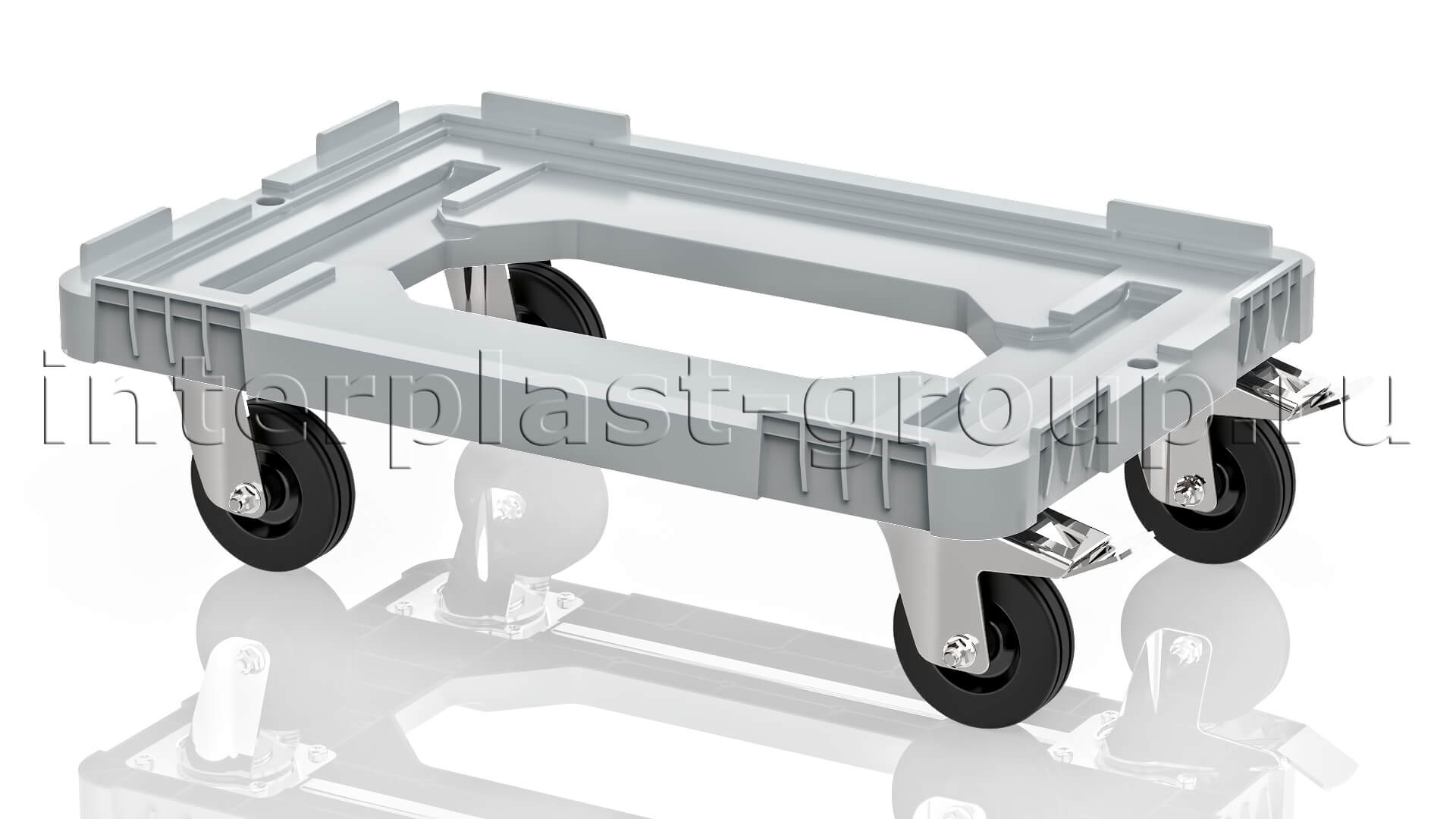 Тележка пластиковая с отверстием 2 колеса с тормозом усиленная серая
